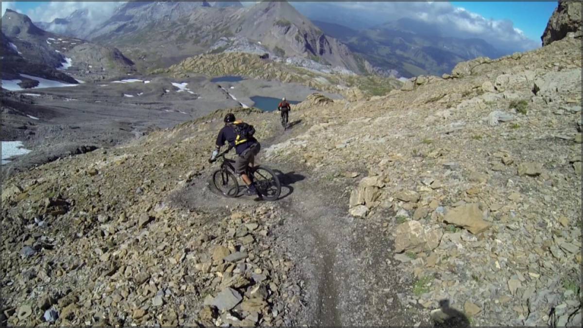 De la Pointe de la Plaine Morte jusqu'au Col du Rawil c'est du VTT alpin dans un paysage à couper le souffle qui vous attend. Le court portage jusqu'à la Wisshornlucke est vite oublié face au single qui se déroule sous vos crampons, enchaînement de parties rapides, de lacets et d'épingles sur un terrain tantôt rocailleux et stable tantôt argileux et fuyant.