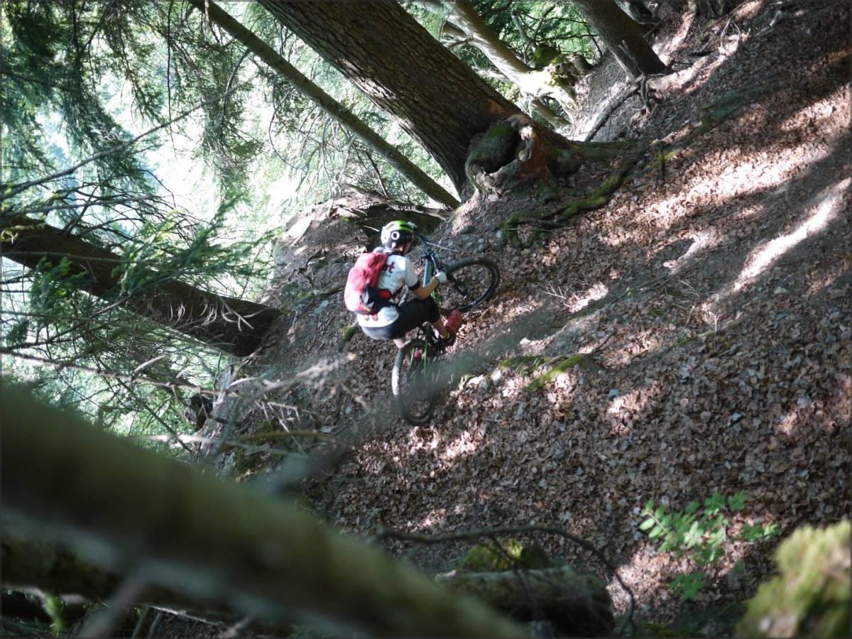 Le début comporte quelques longs dévers, passablement glissants après des pluies. Dès que la forêt est atteinte, on retrouve un terrain plus familier, mélangeant aiguilles de sapin, racines et épingles. On ne quittera plus ce type de terrain jusqu'au retour en plaine.