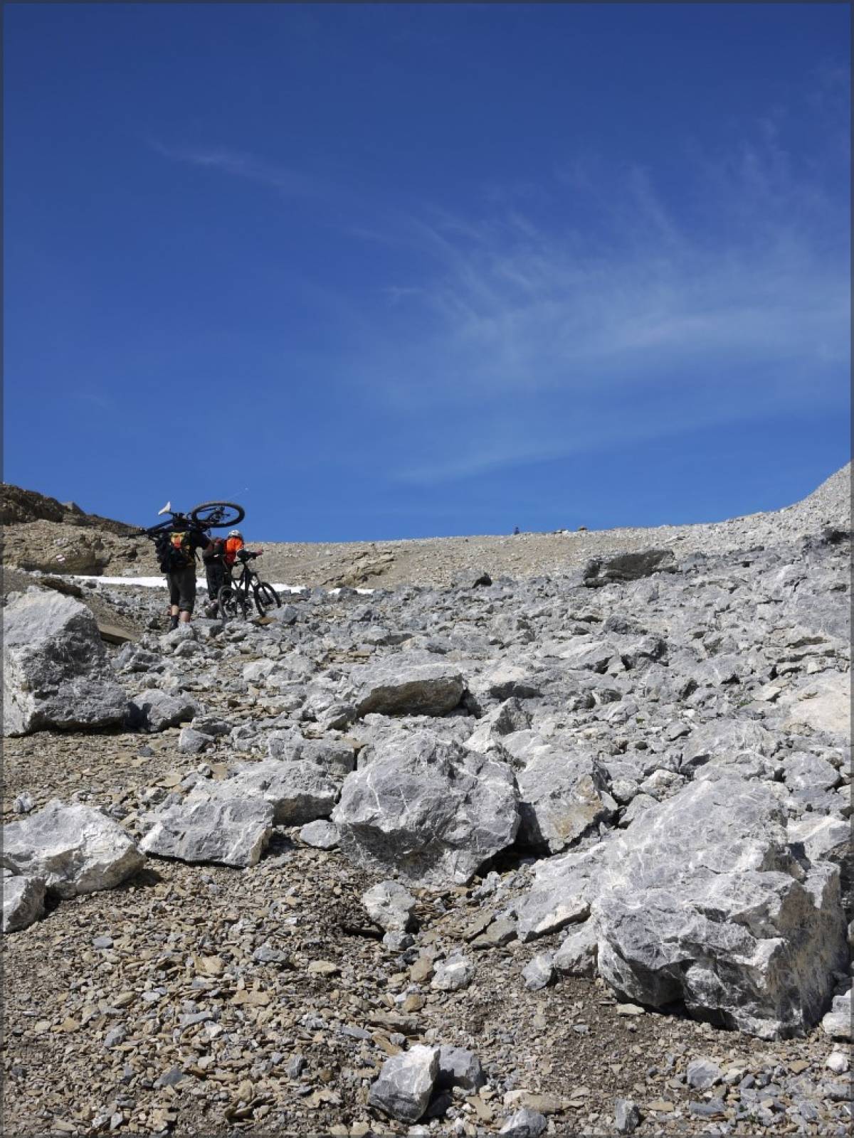 De la Pointe de la Plaine Morte jusqu'au Col du Rawil c'est du VTT alpin dans un paysage à couper le souffle qui vous attend. Le court portage jusqu'à la Wisshornlucke est vite oublié face au single qui se déroule sous vos crampons, enchaînement de parties rapides, de lacets et d'épingles sur un terrain tantôt rocailleux et stable tantôt argileux et fuyant.