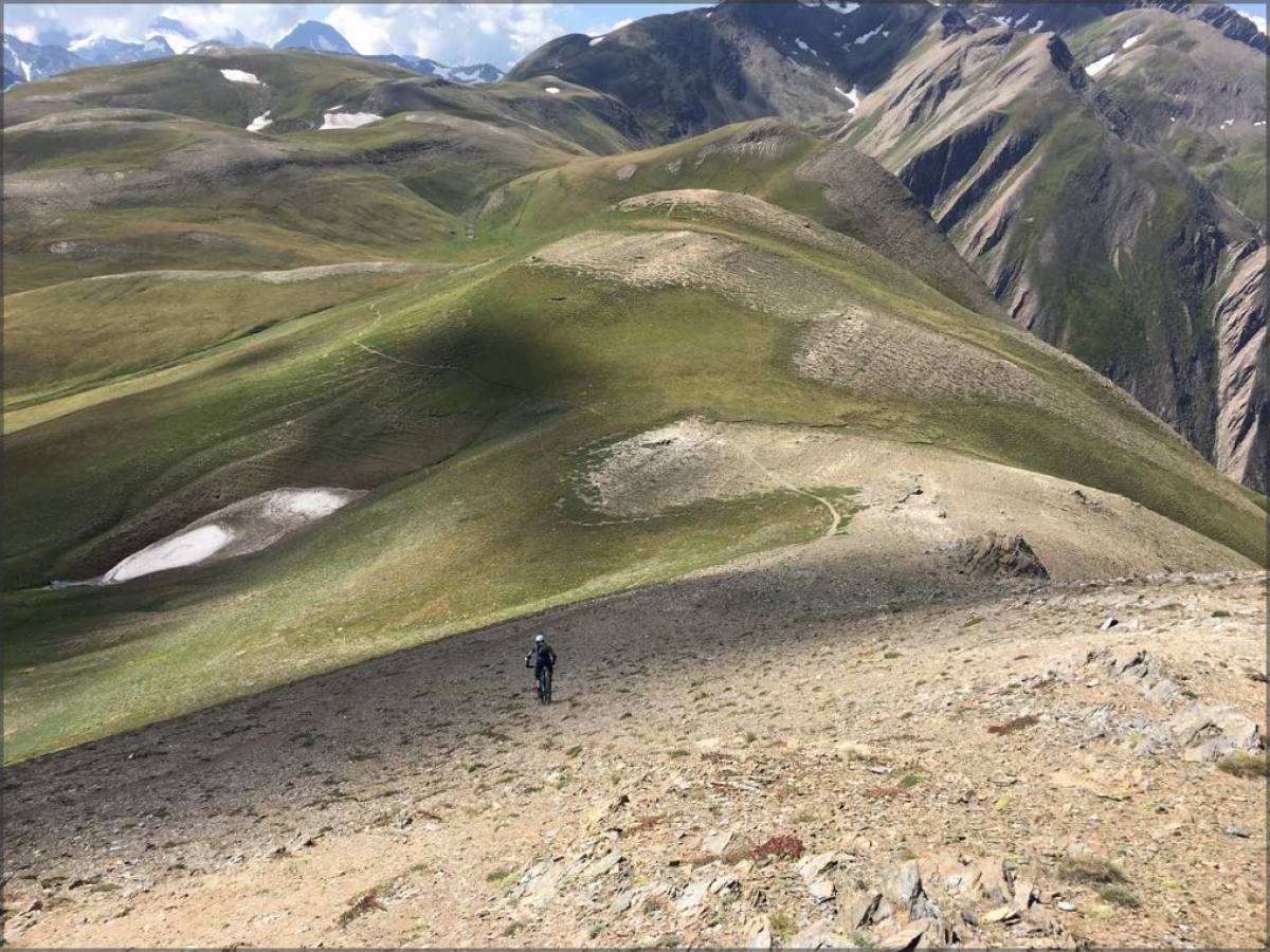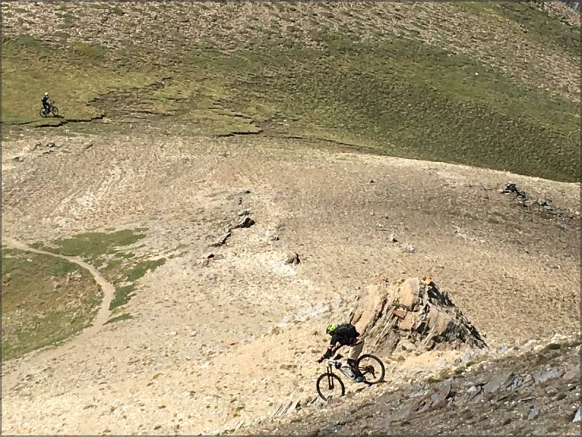 Tellement déçu par cette descente... Elle devait certainement être très bien auparavant mais le passage, les pluies torrentielles de Juin 2024 l'ont totalement dégradé..le chemin est très, trop creusé pour être roulable. À tel point qu'après 600m de dénivelé de descente nous avons préféré finir par la piste. Quel dommage car la montée est sombtueuse et que dire de la vue panoramique au sommet..